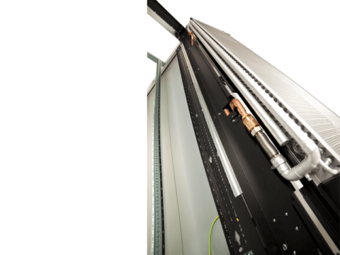 The Knürr DCD is an air-to-water heat exchanger that is integrated into the rear door of a server cabinet. The heat exchanger serves to absorb heat loads from service racks up to 50 kW. The Knürr DCD can be configured with Knurr DCM cabinets or can be installed in other supplier cabinets. The design of the heat exchanger allows for an increase in the temperature of the chilled water.